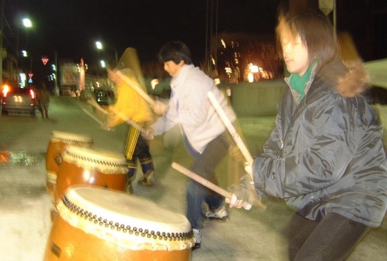 「夕張太鼓」・・・小学生、中学生らしき学生が寒い中、古典芸能を披露。