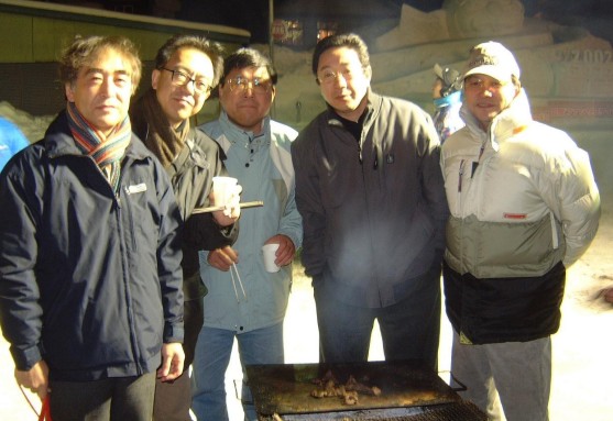 「あがた森魚」・・・市民会館前でのストーブパーティ会場で 赤色エレジーのあがた森魚氏と