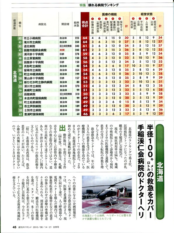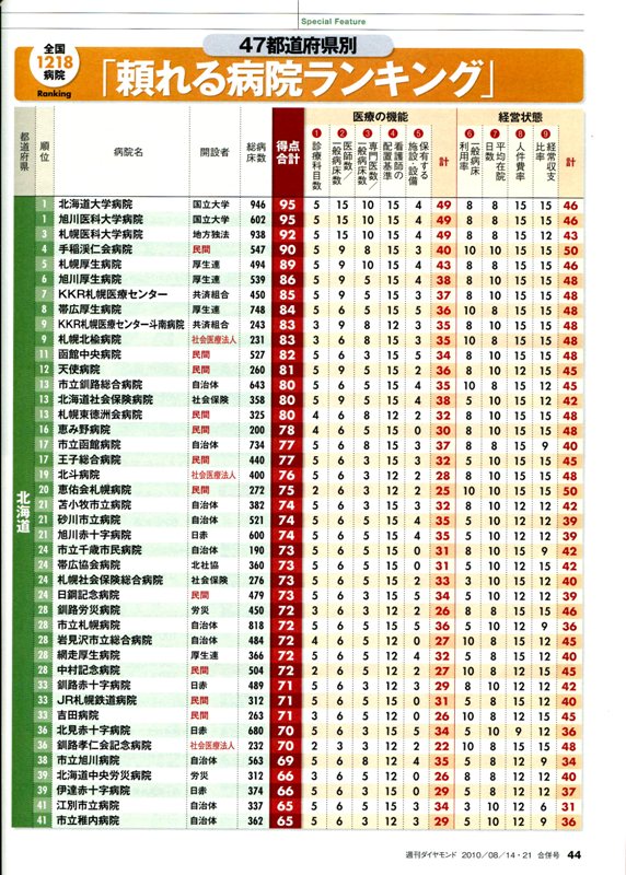 全国病院 ランキング 北海道では