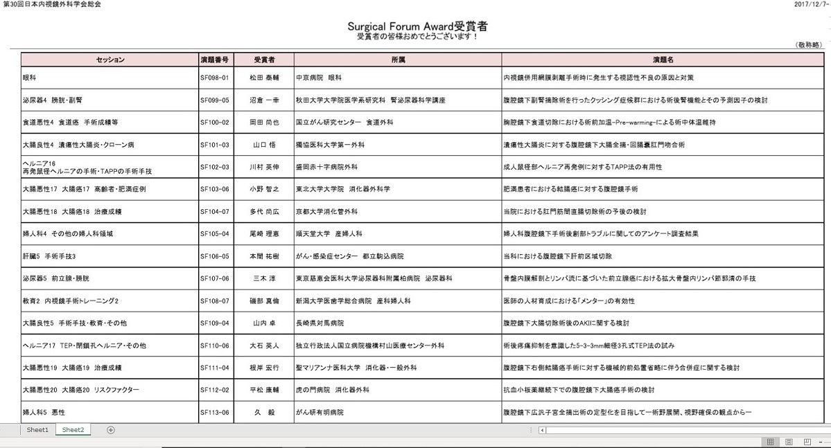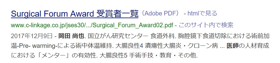 第30回 日本内視鏡外科学会 (2017年12月) Surgical Forum AWARD 「胸腔鏡下食道切除における術前加温 - Pre warming - による術中体温維持」