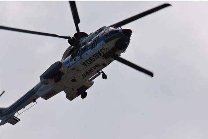 ペリリュー島慰霊の両陛下を、海上保安庁の巡視船「あきつしま」から送迎する海保のヘリコプターです。